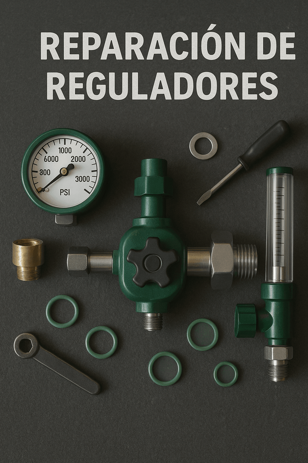 Servicio técnico especializado para reguladores de oxígeno: cambio de manómetros, asiento, bushing, manija, micas, calibración y limpieza general. Garantizamos precisión, seguridad y funcionamiento óptimo.