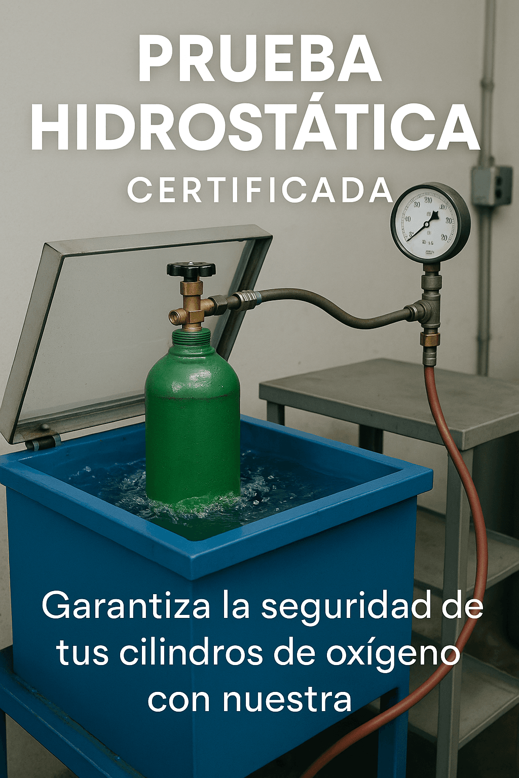 Prueba certificada para garantizar la seguridad y resistencia de tus cilindros de oxígeno a la presión.